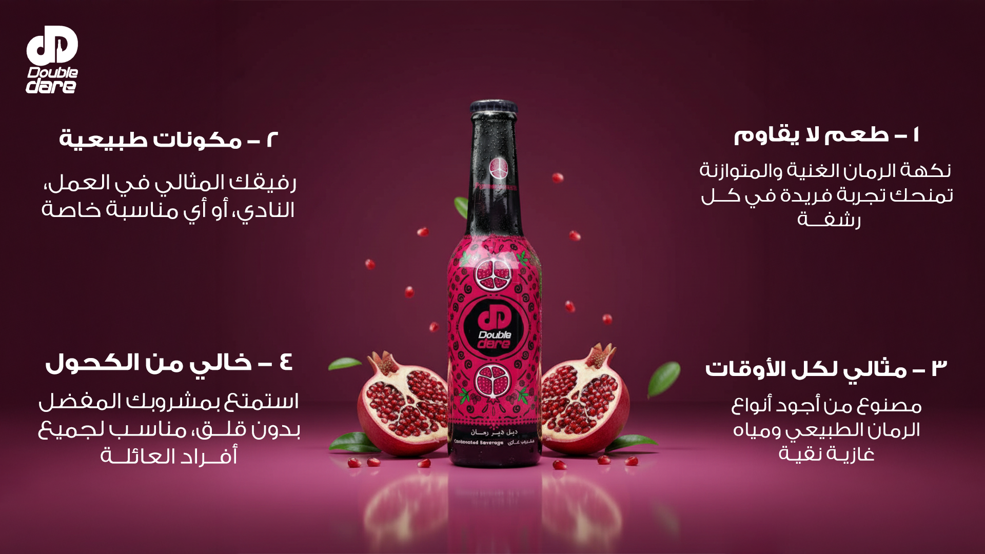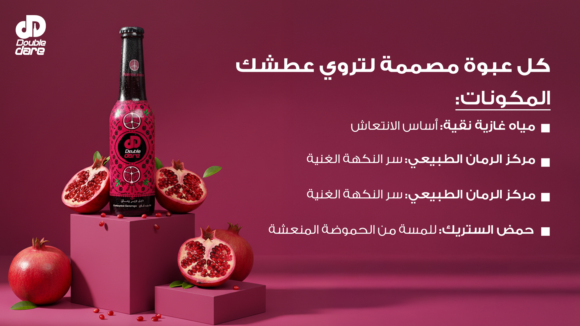 دلّل نفسك بمذاق الرمان الفاخر من دبل دير واطلب الآن وشارك لحظات الانتعاش مع عائلتك وأصدقائك.